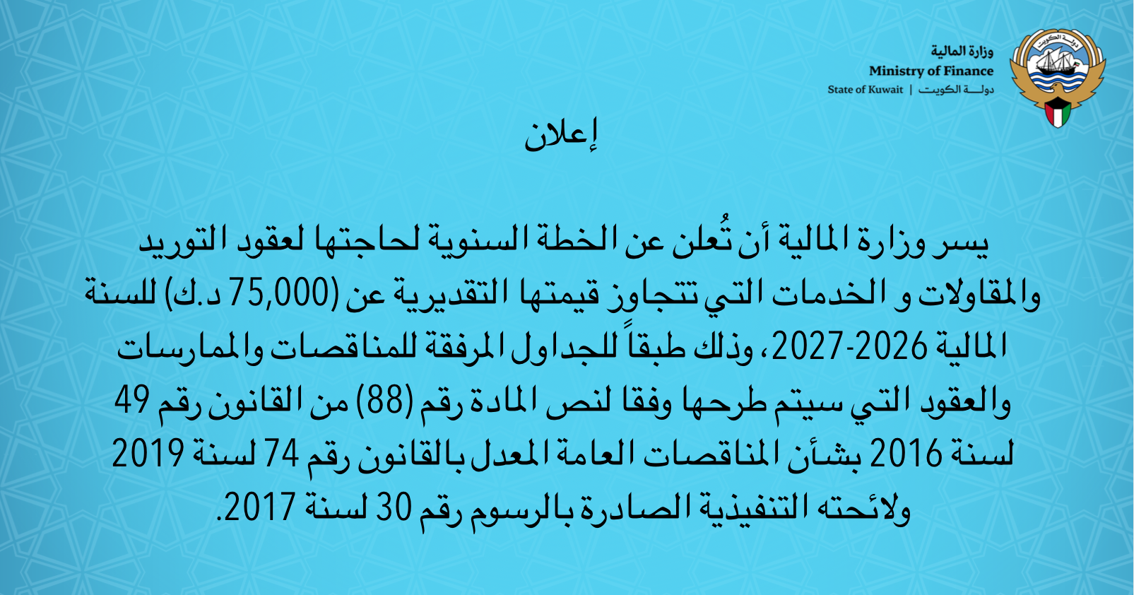 تستقبل وزارة المالية طلبات الإطلاع والحصول على المعلومات والوثائق المرتبطة بها وفق القانون رقم 12 لسنة 2020 ..